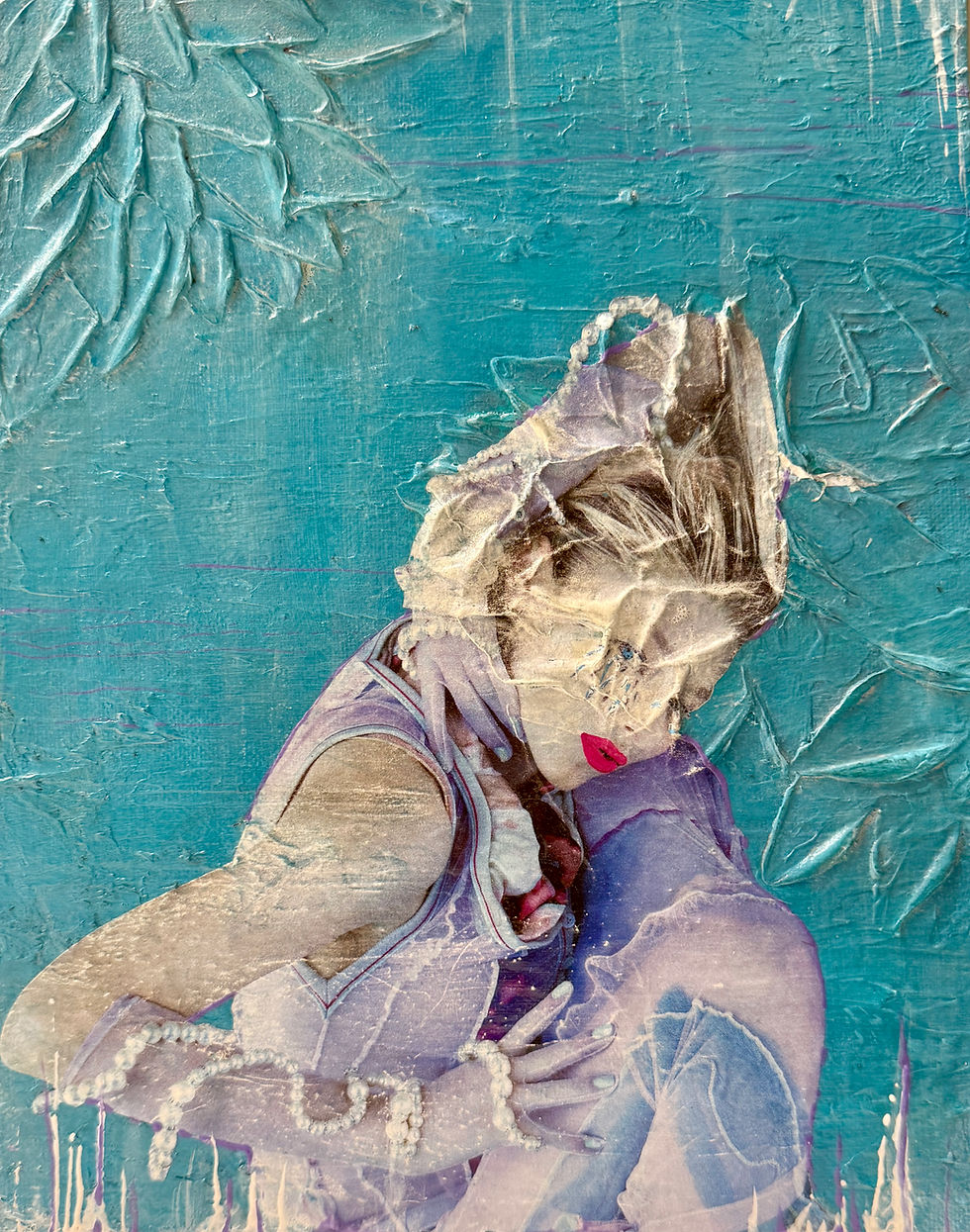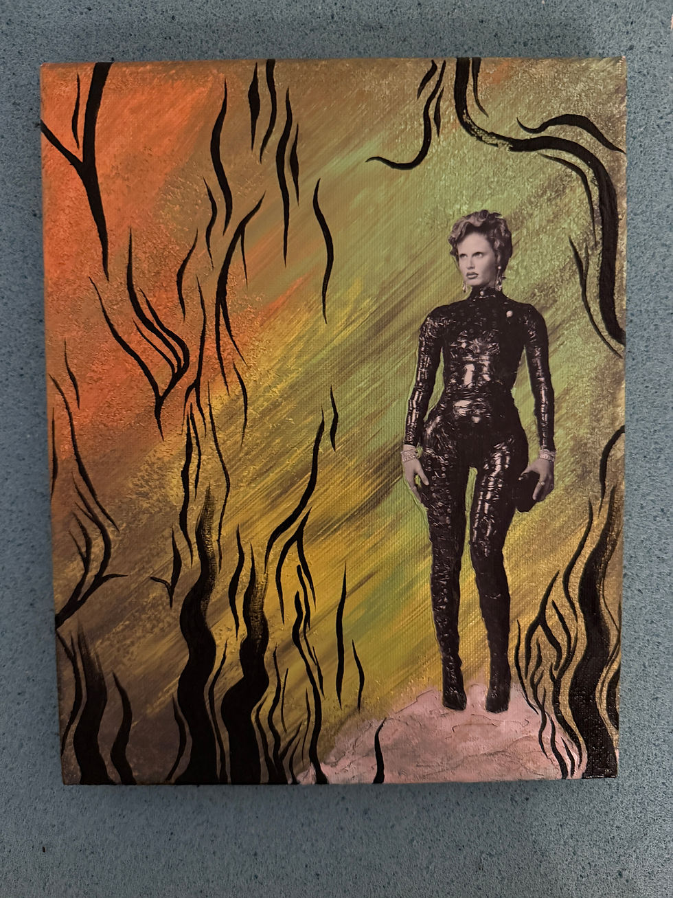 I can recall creating art as far back as I can remember. Most of my work is done in acrylic and pastel. While I occasionally create works of realism, I derive the most artistic satisfaction from my mixed-media paintings. I would describe my paintings as an expression of surrealism. When I create a painting, I begin with a cutout figure. I examine all the paint and materials at my disposal and try to immerse myself in the figure. What colors are they wearing? What would their environment look like? This allows me to choose my colors, patterns, and textures.